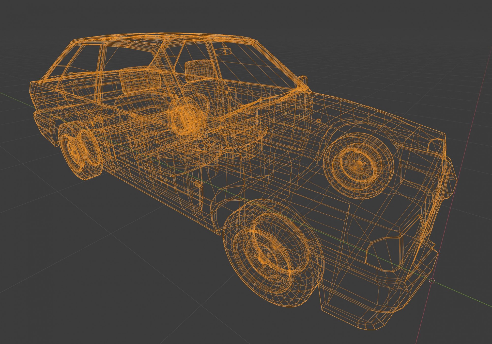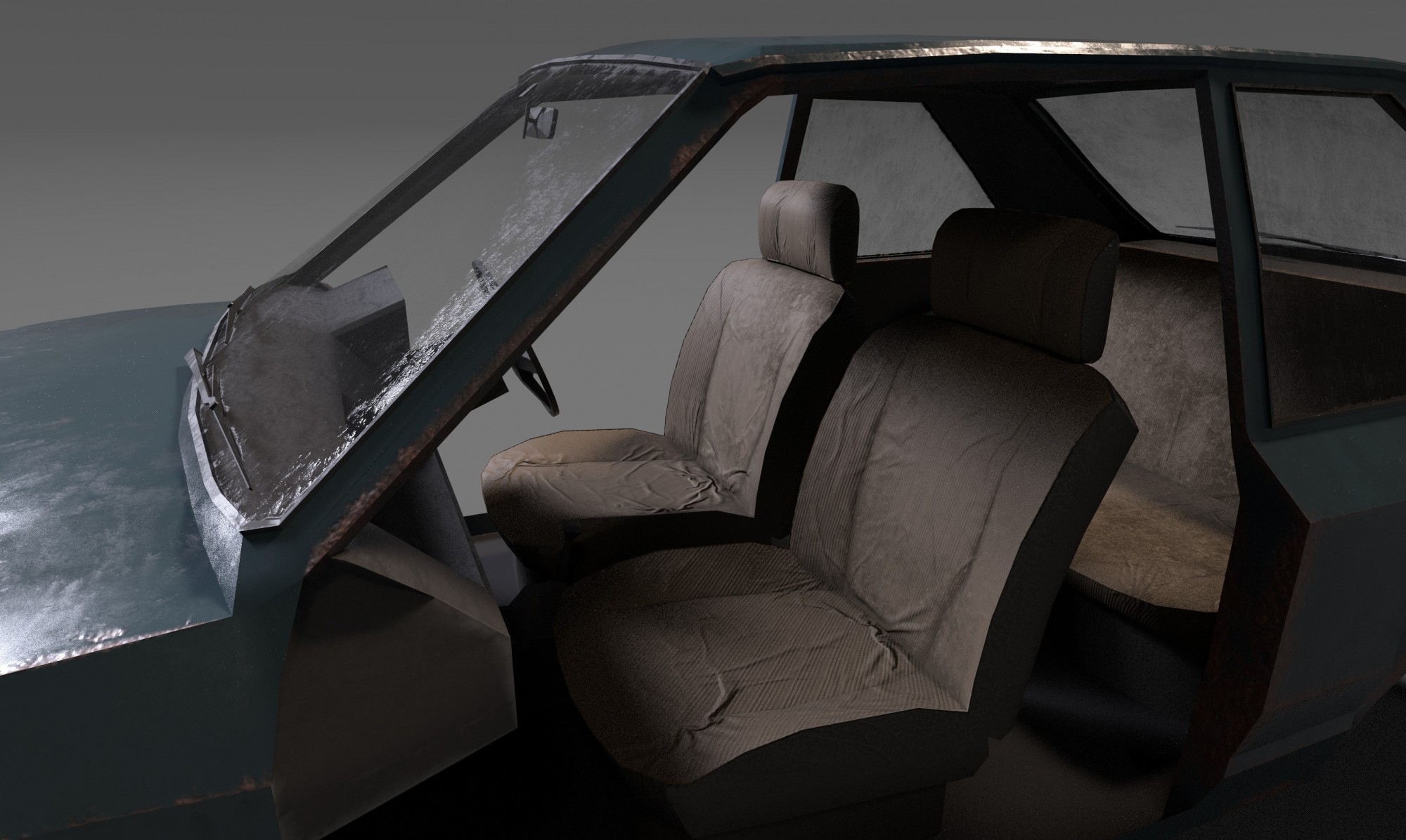 I decided to put my newly acquired Blender skills to the test by having a go at make a vehicle for use in game. I tried to take account of the fact that the prop would be reused for non-interactive scene dressing, so It's not the highest poly model. I'll likely do much higher quality models for the hero vehicles in the game - especially as I have a plan for a mechanic that allows players to sleep in abandoned cars.